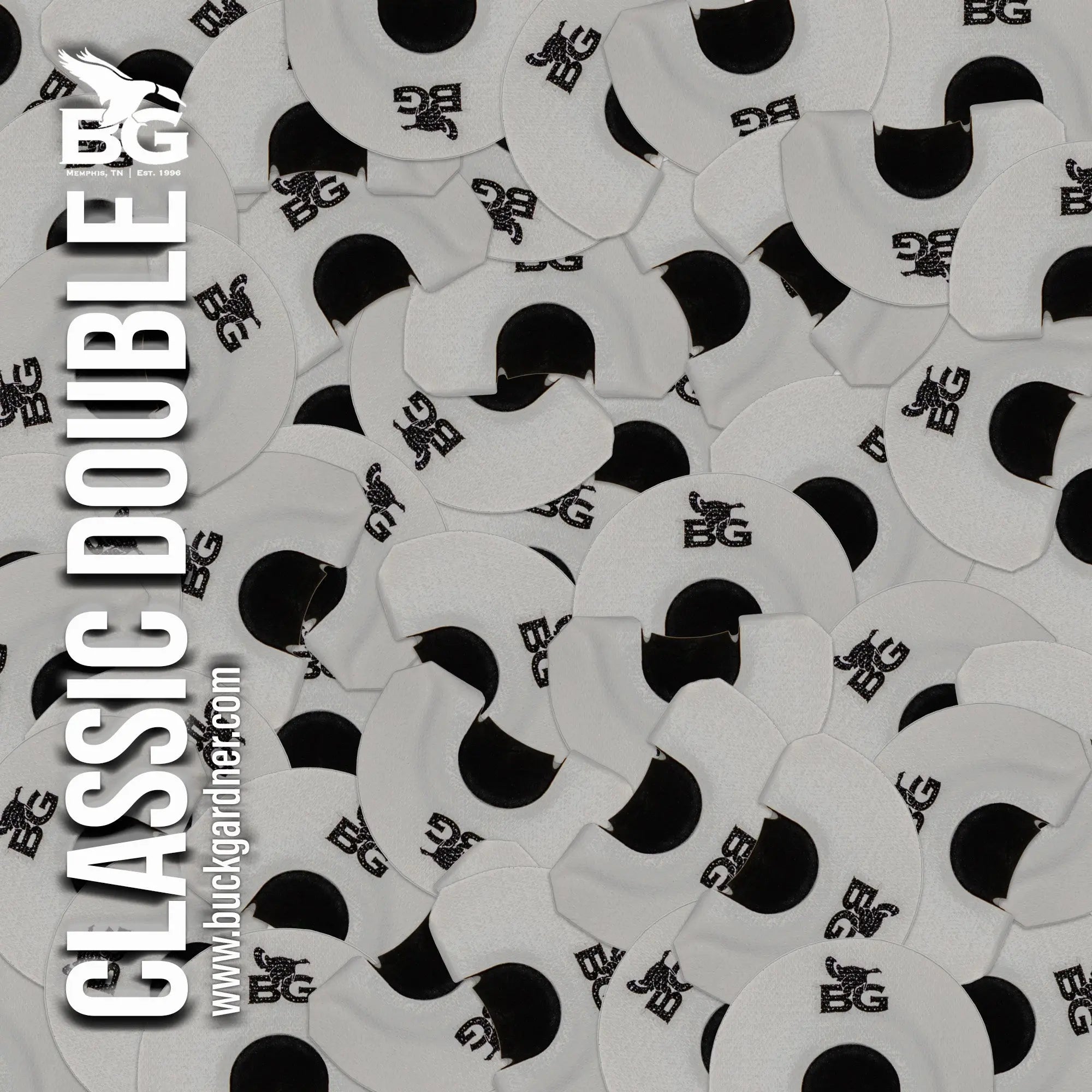Our "Classic Double" mouth call is constructed with two .004 latex pieces, with a split on both sides of the top reed. This double reed design makes it perfect for producing old hen yelps, purrs, and early morning tree calls.
